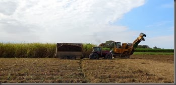 Dan was so kind to explain the whole operation to us. Canes are placed mechanically in the ground and must contain at least one bud. New sprouts grow up from each joint. Some of the cane tumbles to the ground during harvesting and start growing there. It takes about 14 months for the cane to grow to a height to be cut. They get several cuttings from one planting through the years, but with declining yields each year. Dan said they replant about every five years. Look at the size of the harvesters used.